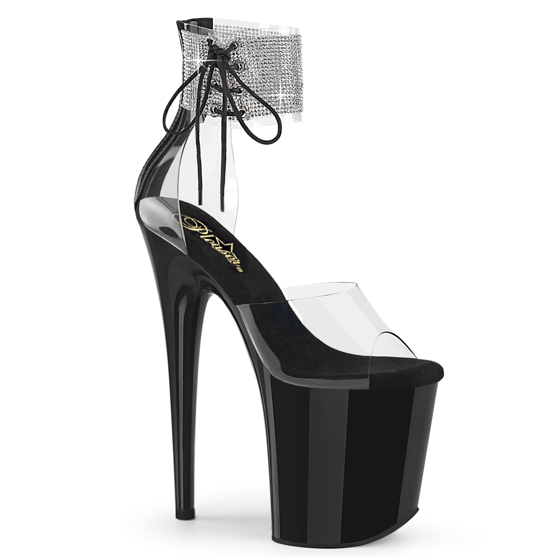8"" (200mm) Heel, 4"" (100mm) Platform Close Back Rhinestone Embellished Ankle Cuff Sandal w/Side Lacing, Back Zip Closure