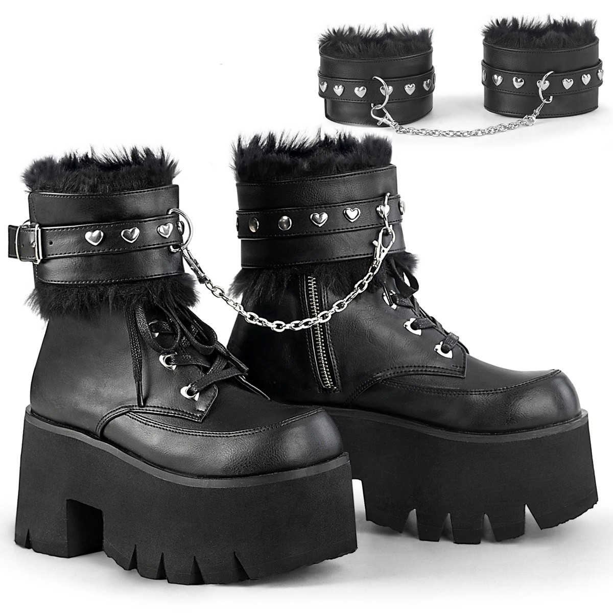 Black Vegan Faux Leather 3 1/2 inch (9 cm) Chunky Heel 2 1/4 inch (5.7 cm) Platform Lace-Up Ankle Bt Side Zip