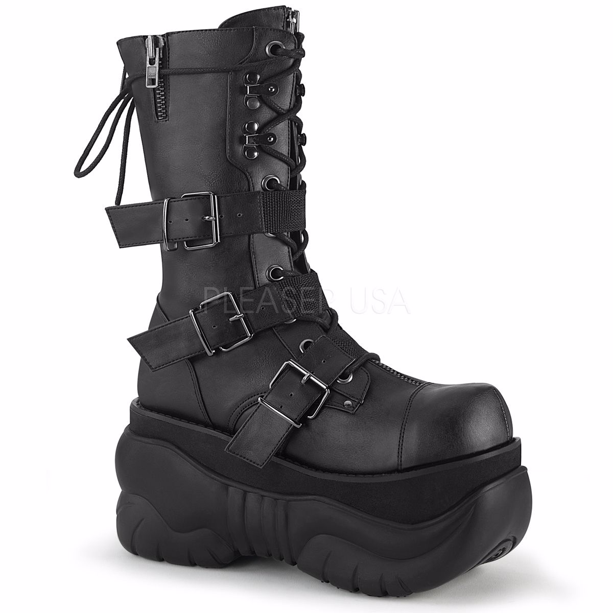 Black Vegan Faux Leather 4 inch Platform Lace-Up Mid Calf Boot Back Metal Zip