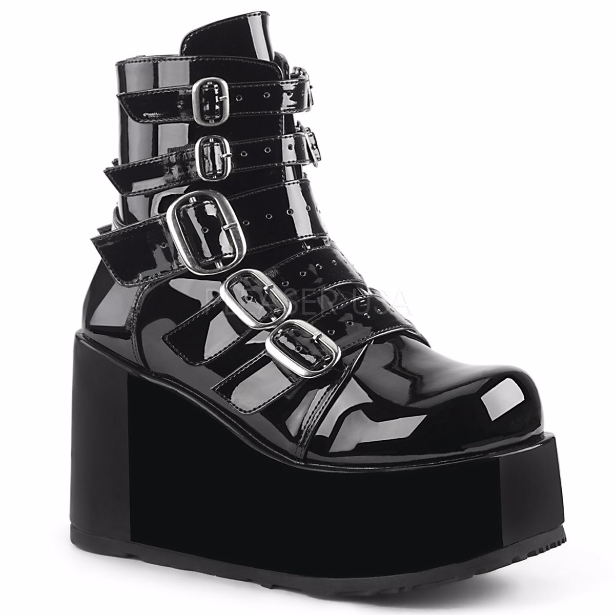 4 1/4 inch (108mm) Platform Ankle Boot W/ Multi Buckle Straps, Back Metal Zip Closure