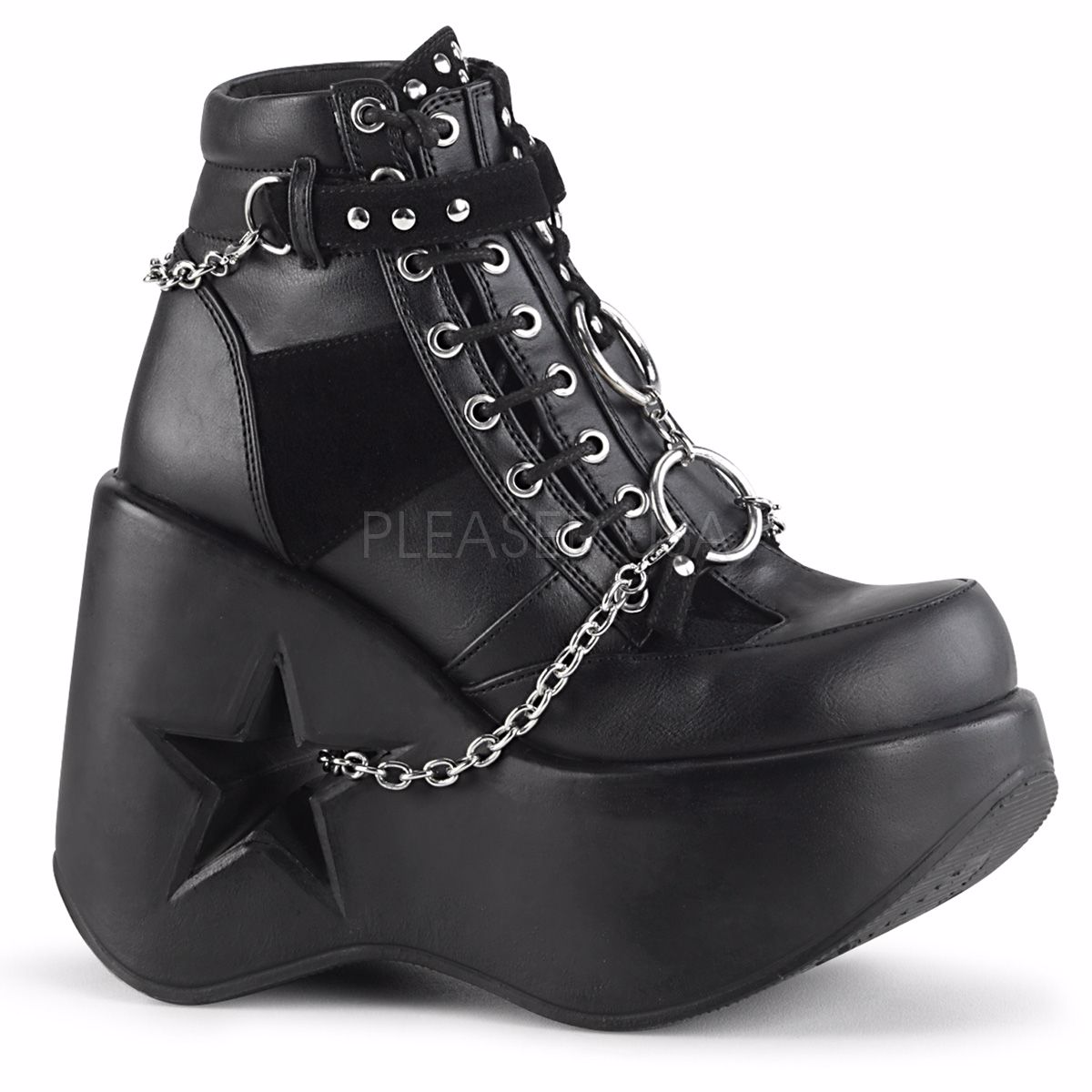 5" (127mm) Star Cutout Platform Wedge Side Lace-Up Ankle Boot, Featuring Center O-Ring & Stud Details w/ Top Hook N' Loop Straps & Chain Ornamentation on Heel & Through the Platform Cutout, Side Zip Closure