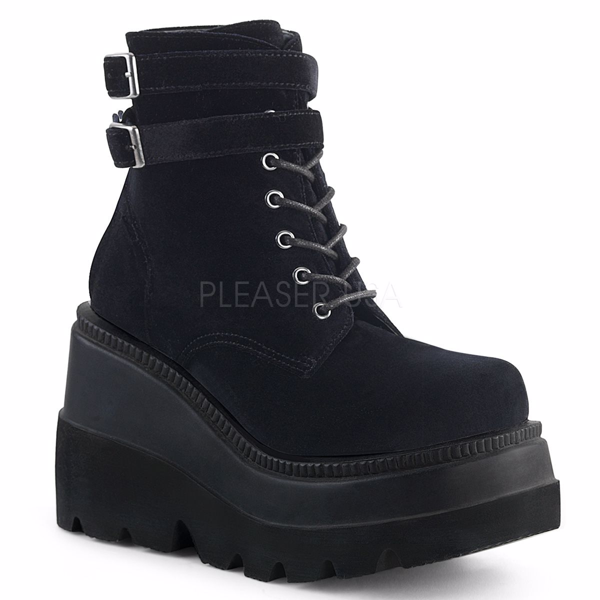 4 1/2 inch (114mm) Wedge Platform Lace-Up Front Ankle Boot w/ Double Buckled Ankle Straps, Inside Zip Closure