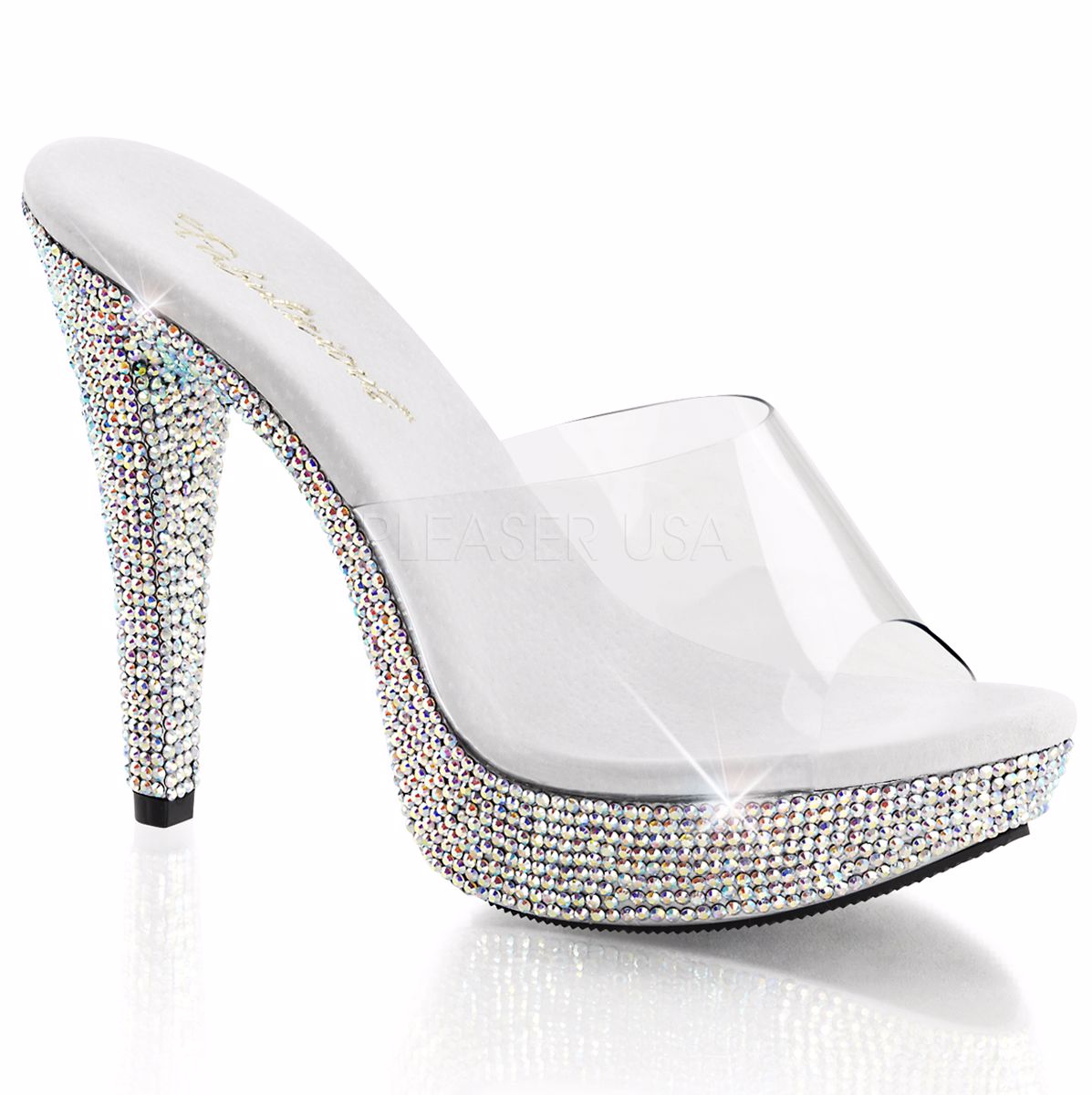 5 inch (12.7 cm) Heel, 1 inch (2.5 cm) Platform Slide Featuring Rhinestones Encrusted on the Entire Platform Bottom