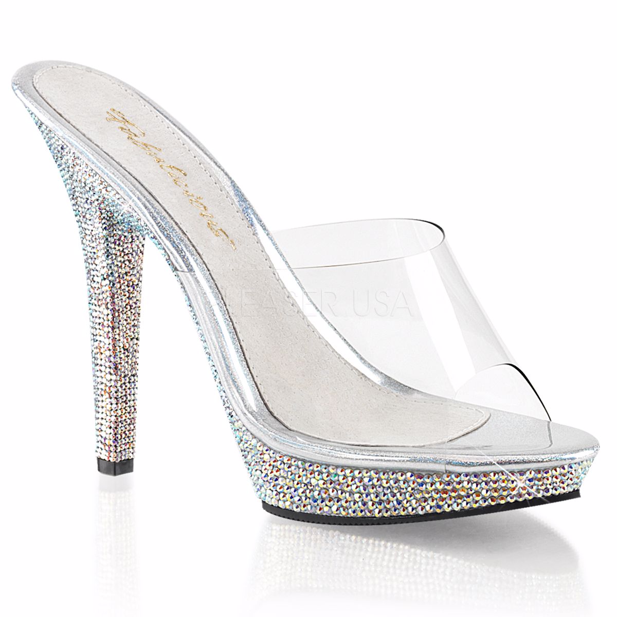 Clear/ Silver Multi Rs, 5 inch (12.7 cm) Heel, 3/4 inch (1.9 cm) Platform