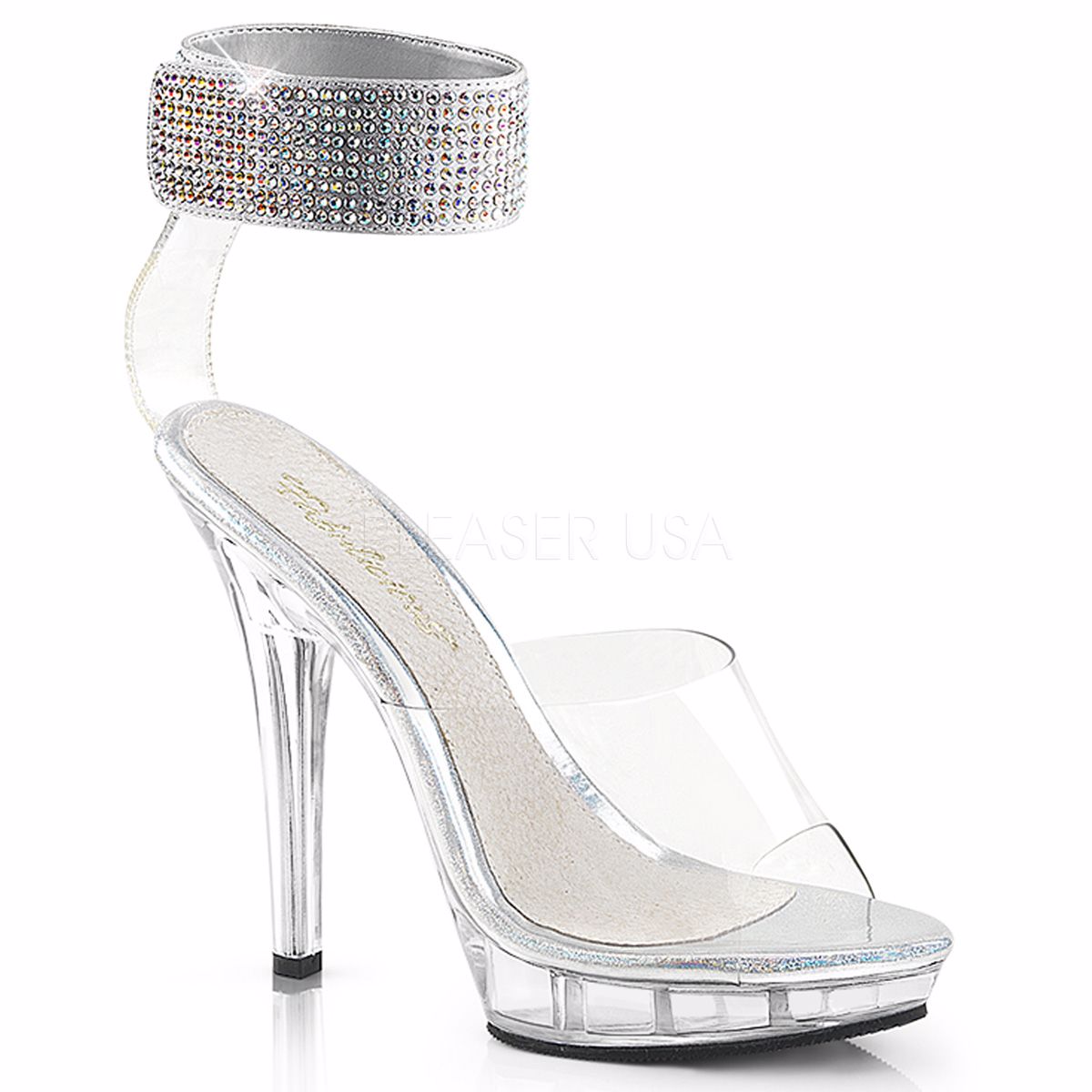 5 inch (12.7 cm) Heel, 3/4 inch (1.9 cm) Platform Sandal Featuring WIde Ankle Band Fully Covered with Rhinestones