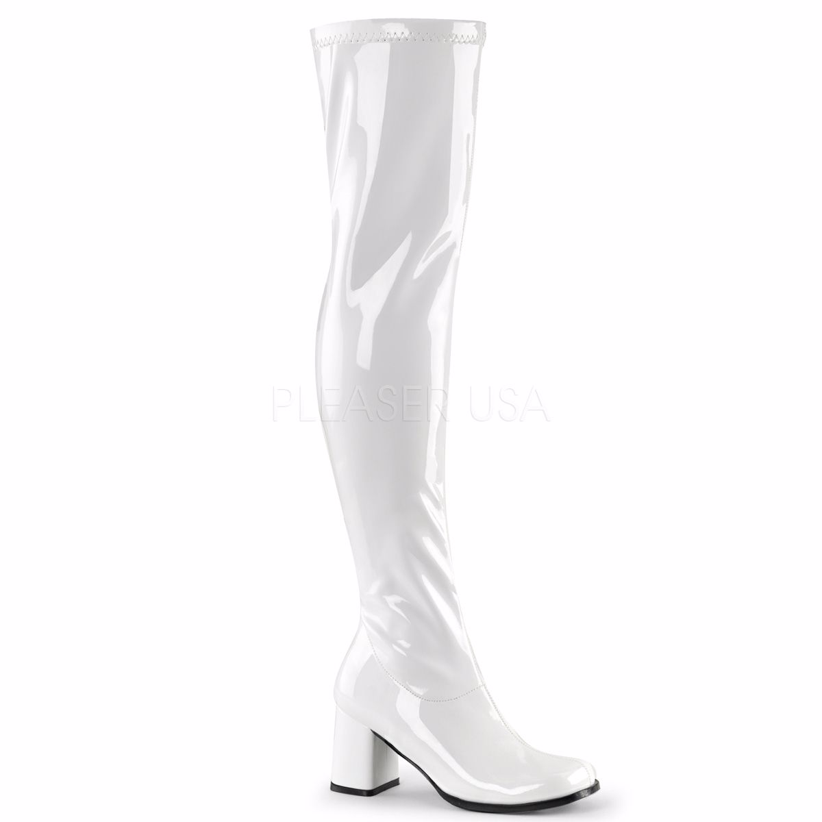 3 inch (7.6 cm) Block Heel Gogo Over-the-Knee Boot, Stretch Patent, Full-Length Inside Zip Closure