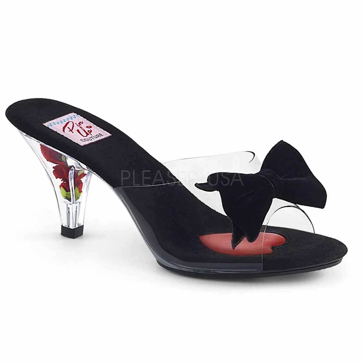 3 inch (76mm) Heel, 1/8 inch (3mm) Platform Slide w/ Velvet Bow & Flower Filled Heel