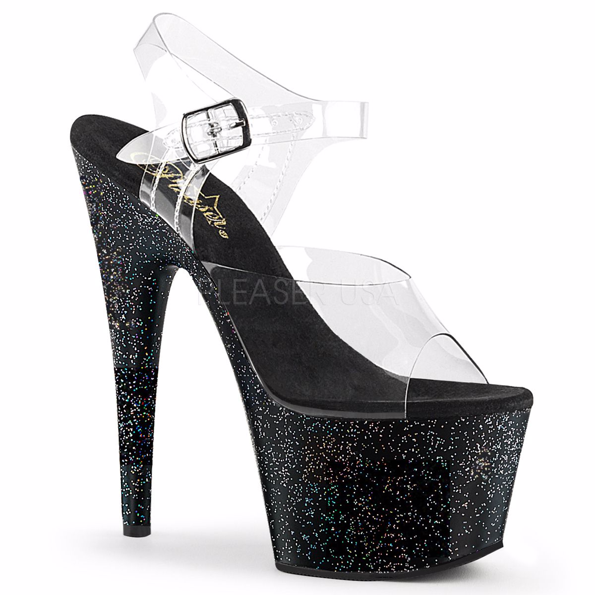 7 inch (17.8 cm) Stiletto Heel, 2 3/4 inch (7 cm) Platform Ankle Strap Sandal Featuring Mini Iridescent Glitter on the Entire Platform