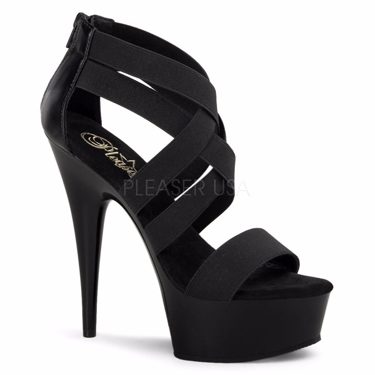 6 inch (15.2 cm) Stiletto Heel, 1 3/4 inch (4.5 cm) Platform Criss-Cross Elastic Straps Close Back Sandal, Back Zip