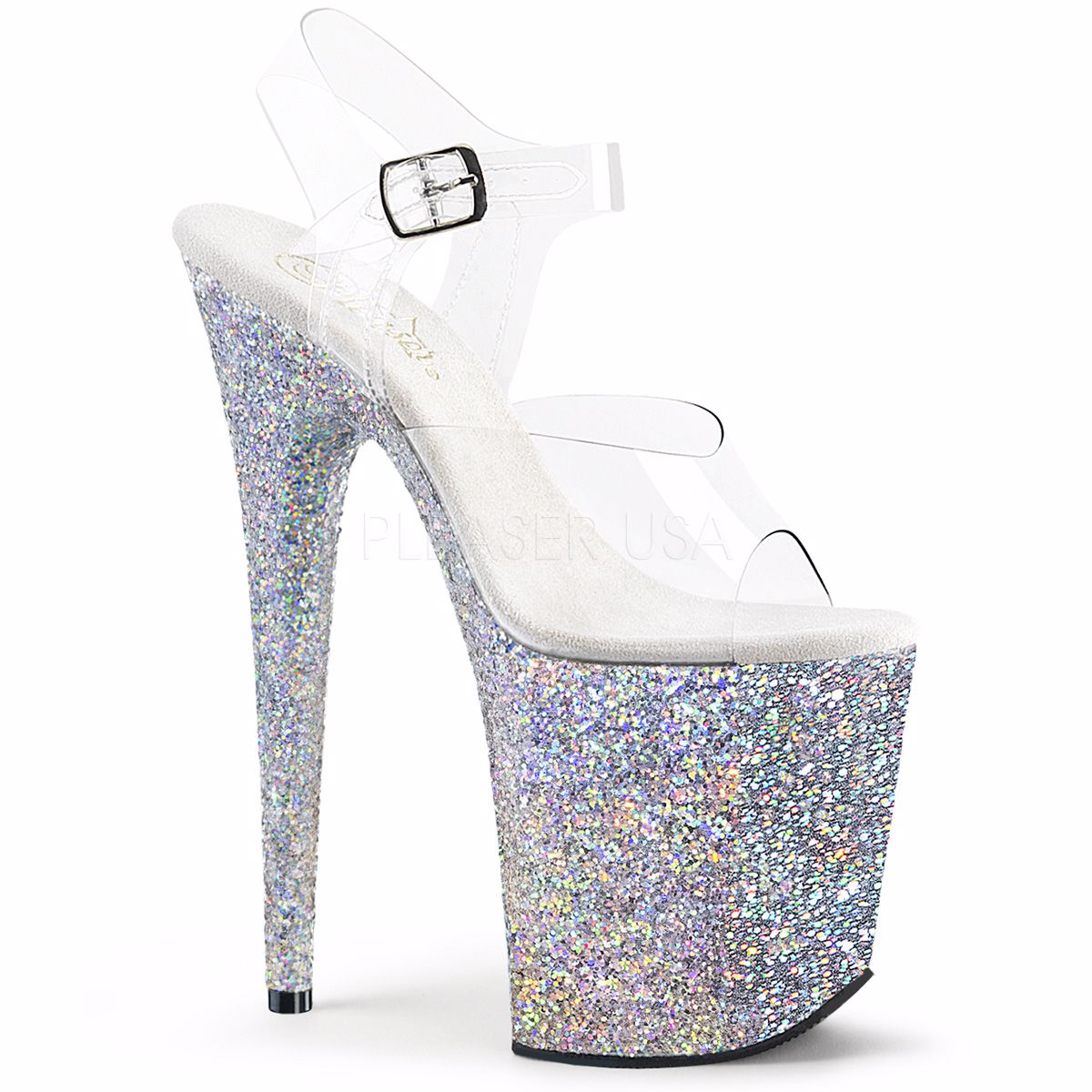 8 inch (200mm) Heel, 4 inch (100mm) Platform Ankle Strap Sandal Featuring the Entire Platform Bottom Covered w/ Glitters