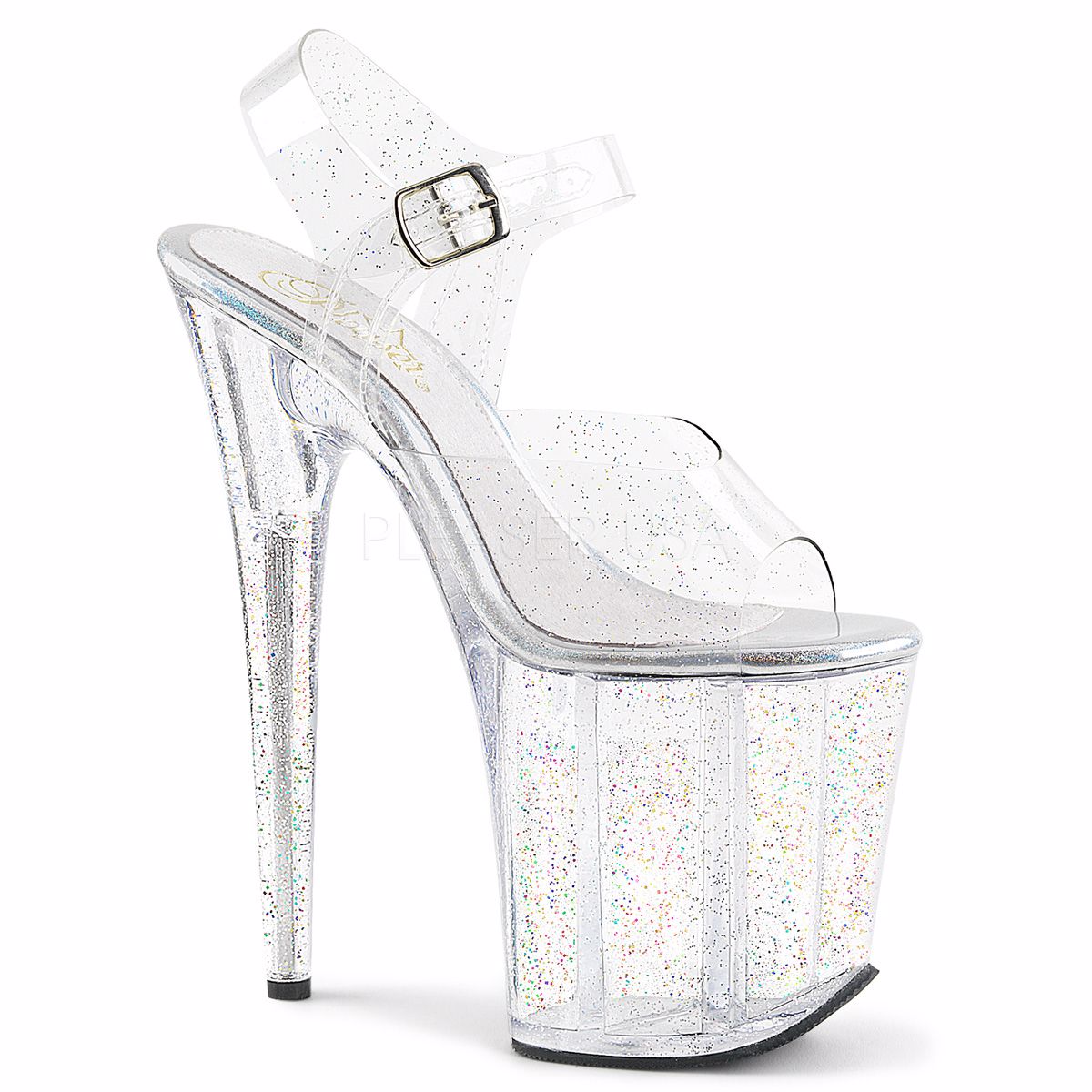 8 inch (20.3 cm) Stiletto Heel, 4 inch (10.2 cm) Platform Ankle Strap Sandal Featuring Mini Iridescent Glitter on the Entire Upper & Platform