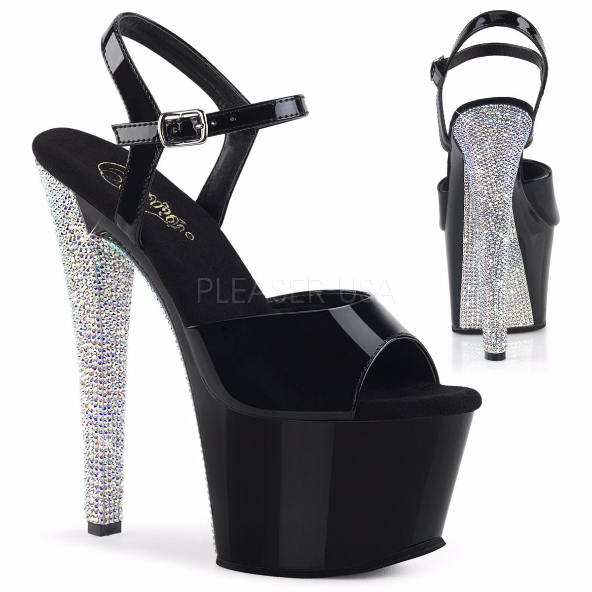 7 inch (178mm) Heel, 2 3/4 inch (70mm) Platform Ankle Strap Sandal w/ Contrast Rhinestones on the Heel & Platform Bottom